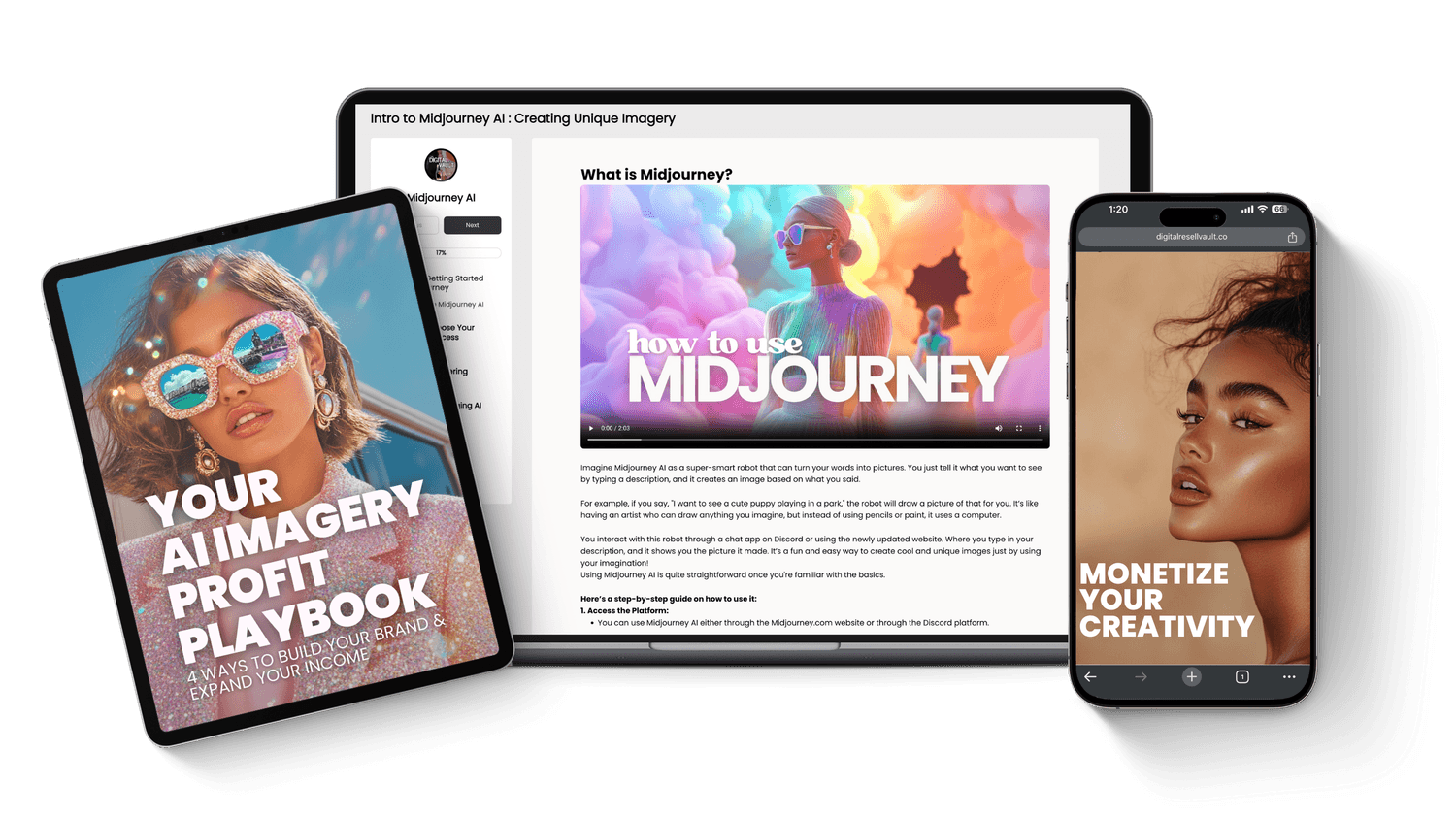 Master AI image creation and learn how to turn your designs into profitable digital products that elevate your brand.
