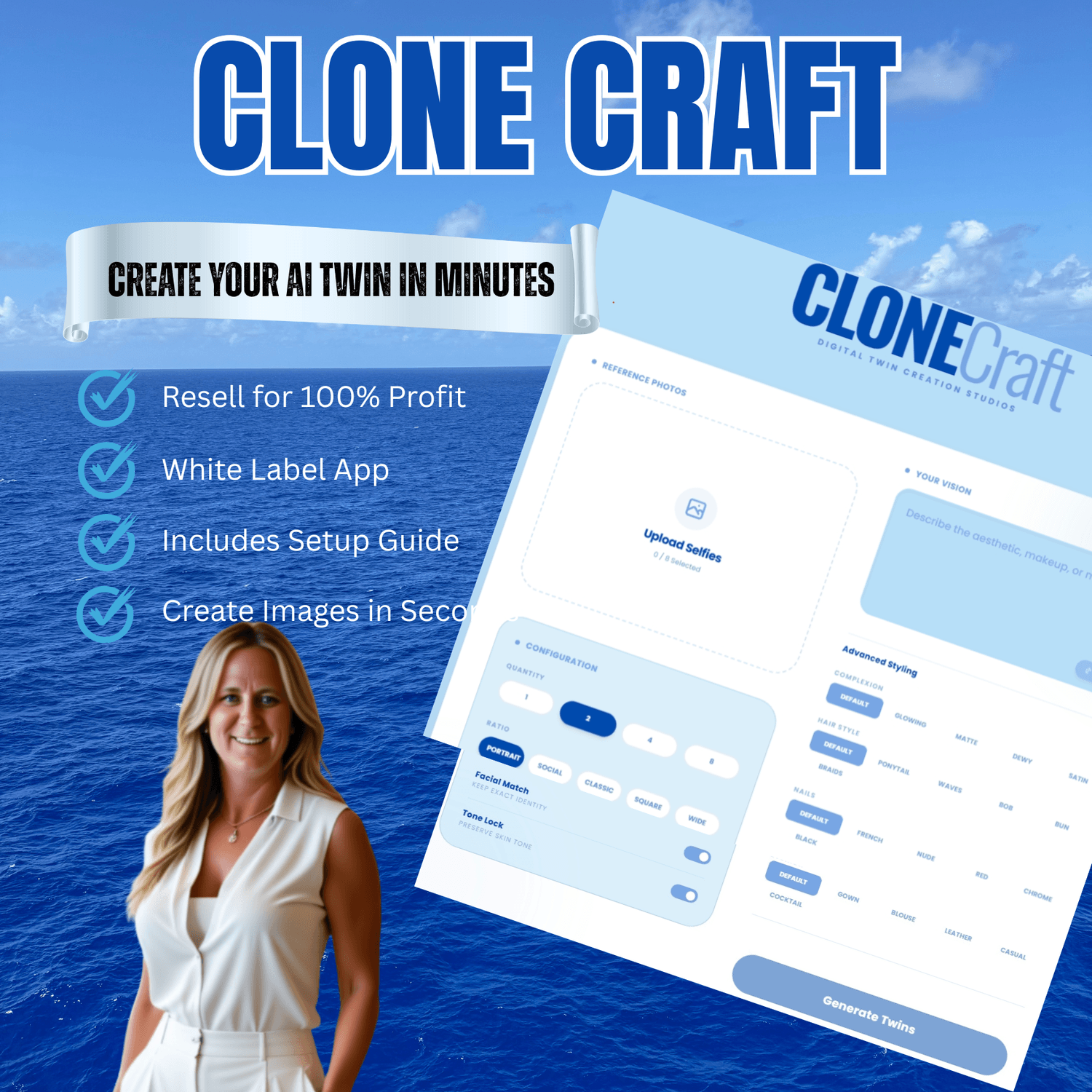 Clone Craft lets you create a photorealistic digital version of yourself that can appear in any scenario, any location, any aesthetic on demand.
